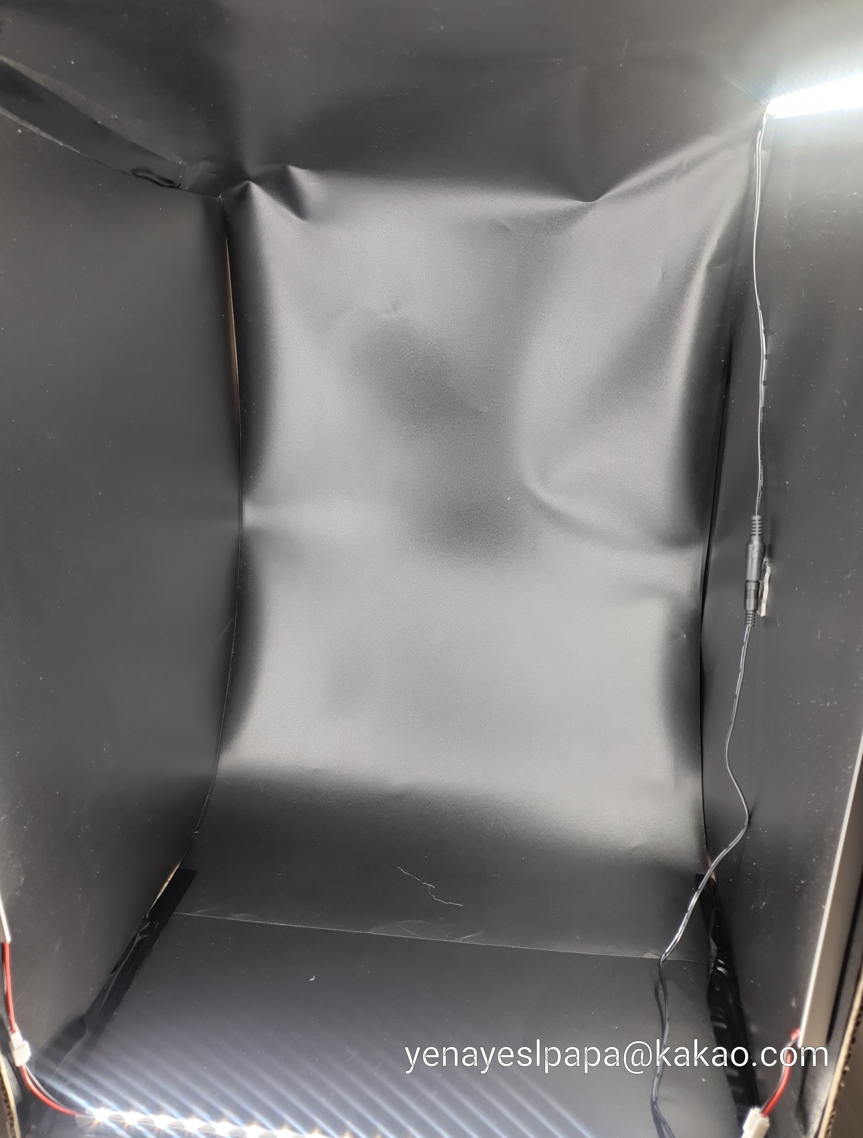 포스팅을 하든 게시글을 올리든 리뷰를 쓰든 물건을 두고 사진을 찍으려면 포토박스가 필요한데 이거 무슨.. 10만원은 기본으로 넘어가니..그래서 그냥 수제로 만들어 보았습니다. 무엇을 받은 소포인지 기억은 안나는데..뭔가 3가지가 들어 있었던 필이 납니다. 아..그랑조... 원래 포토를찍을때 쓰던 PVC지를 마구 마구 잘라줍니다. 계속 말려서 재단이 쉽지는 않았습니다. 그리고 붙입니다. 재단과 마감이 엉망입니다. 그냥 처음은 그래 하면서 밀고 나갑니다. 일단계 완성!! 한번 찍어 봅니다. 역시 뭔가 부족합니다. 광량이 부족해...형광등으로는 너무 부족해.. 일단 엘이디 판떼기를 구해 보았습니다. 납뗌 그런거 잘 하지도 못하고 도구도 없어서 그냥 붙어 있는 것을 구했습니다. 그리고 달아 봅니다. 정면에서 켰..